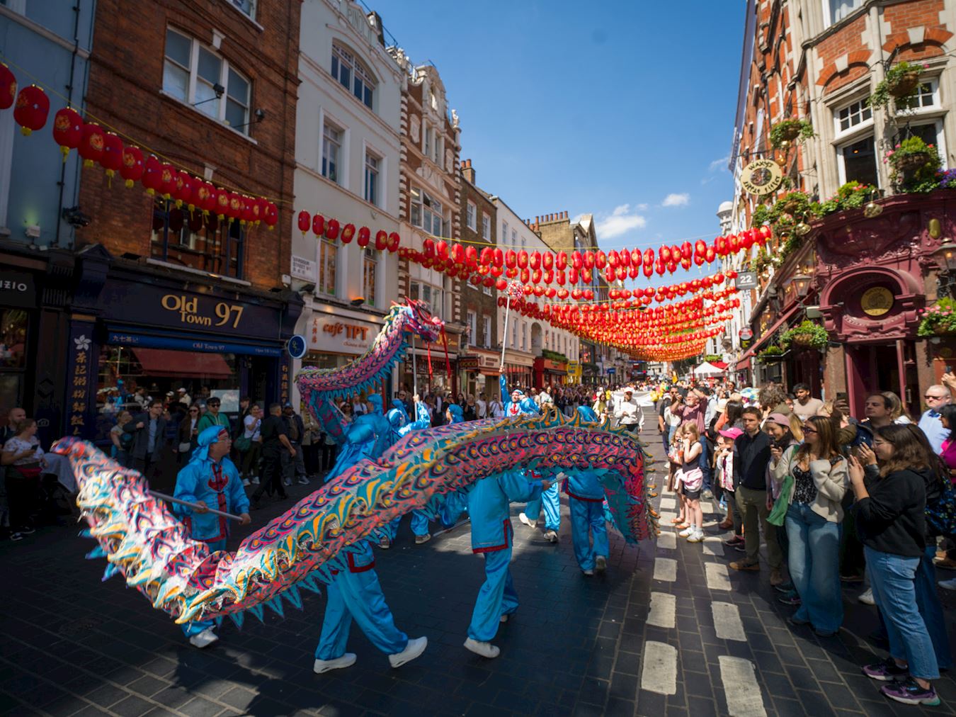 Bio je vedar, sunčan dan, a rijetko lijepo vrijeme je dodalo radosnu notu dnevnim aktivnostima. Parada je uključivala dobošarsku grupu, nebeske djevojke, plesače sa zmajem i praktikante koji su demonstrirali vježbe. Od kineske ambasade, povorka je prošla kroz najprometnije trgovačke četvrti Londona, uključujući Regent Street, Oxford Circus, Piccadilly Square i Kinesku četvrt. Šarene zastave i ritam doboša stvarao je optimističnu, ali i mirnu atmosferu. Mnogi ljudi su se zaustavili da gledaju i fotografišu se.