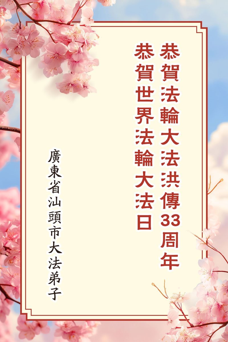 13. maj 2025. godine obeležava se 26. Svetski dan Falun Dafe i 33. godišnjica javnog predstavljanja Falun Dafe. Ovaj dan je takođe rođendan učitelja Li Hongdžija, osnivača Falun Dafe. Praktikanti širom sveta šalju svoje srdačne čestitke kako bi proslavili ovaj veliki događaj i odali počast poštovanom Učitelju na ovaj poseban dan.