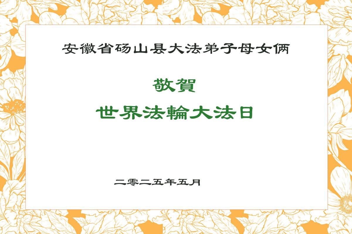 Falun Dafa praktikanti iz provincije Anhui žele poštovanom Učitelju srećan rođendan i proslavljaju Svetski dan Falun Dafe!