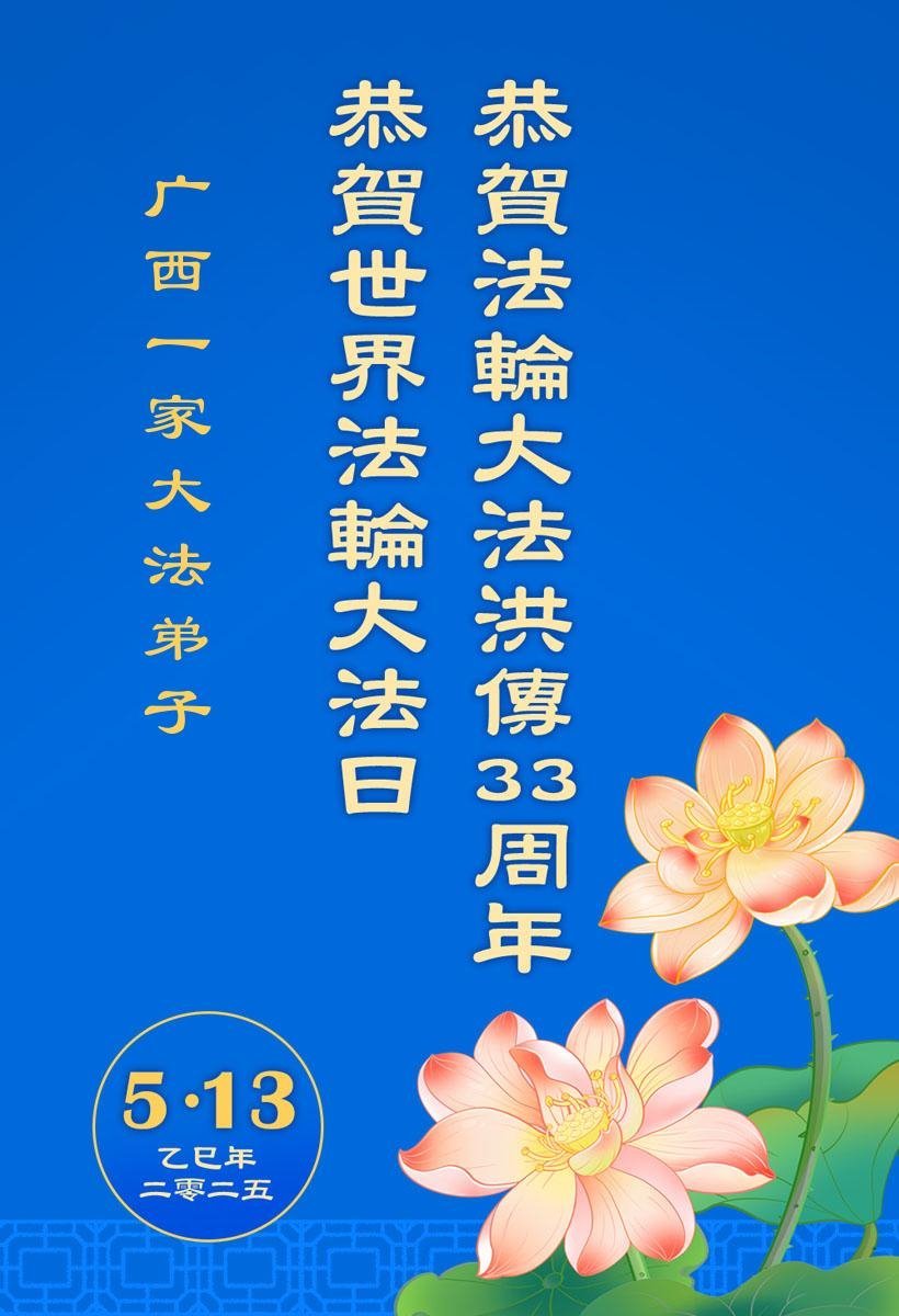 Falun Dafa praktikanti iz Guangsija žele poštovanom Učitelju srećan rođendan i proslavljaju Svetski dan Falun Dafe!