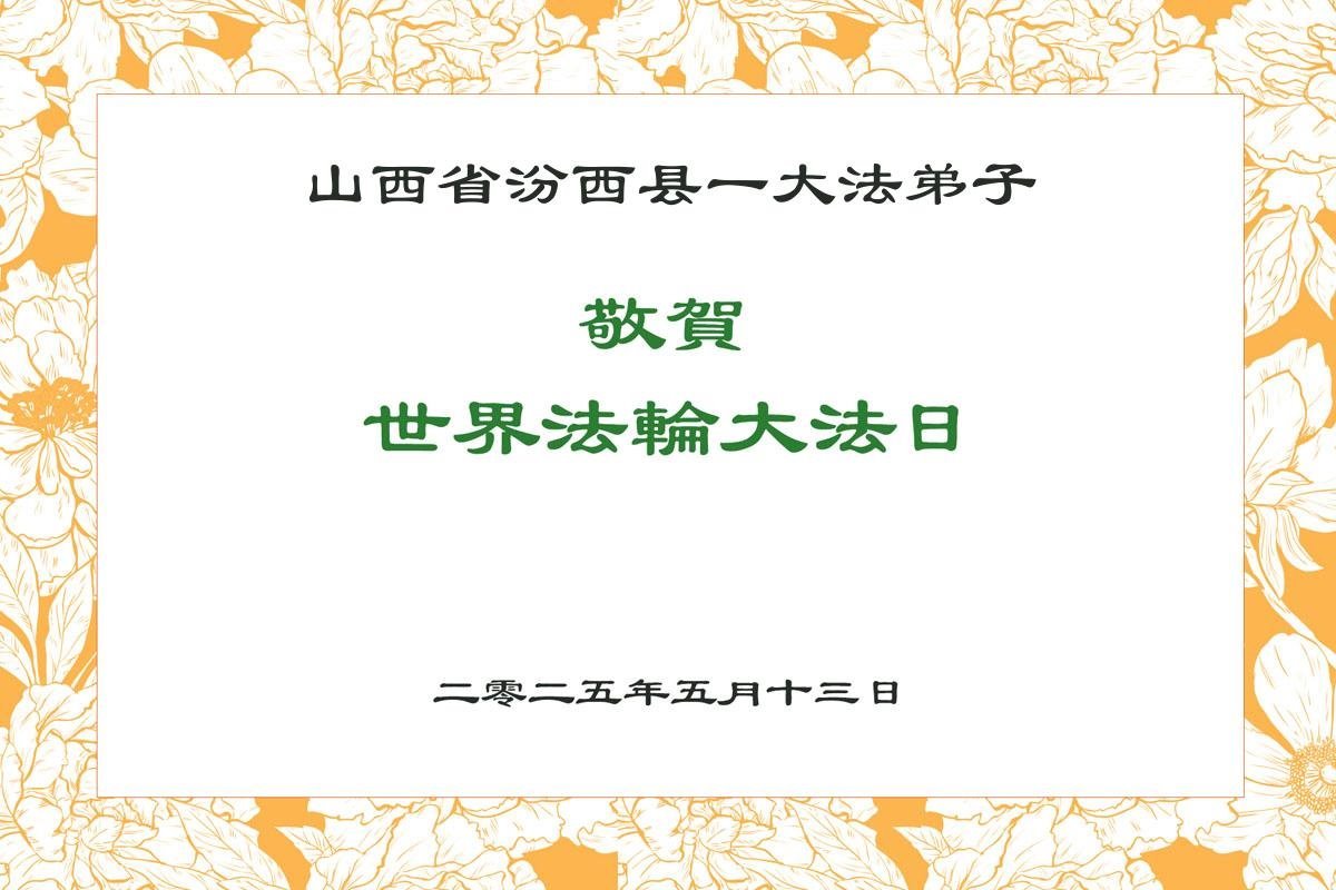 13. maj 2025. godine obeležava se 26. Svetski dan Falun Dafe i 33. godišnjica javnog predstavljanja Falun Dafe. Ovaj dan je takođe rođendan učitelja Li Hongdžija, osnivača Falun Dafe. Praktikanti širom sveta šalju svoje srdačne čestitke kako bi proslavili ovaj veliki događaj i odali počast poštovanom Učitelju na ovaj poseban dan.