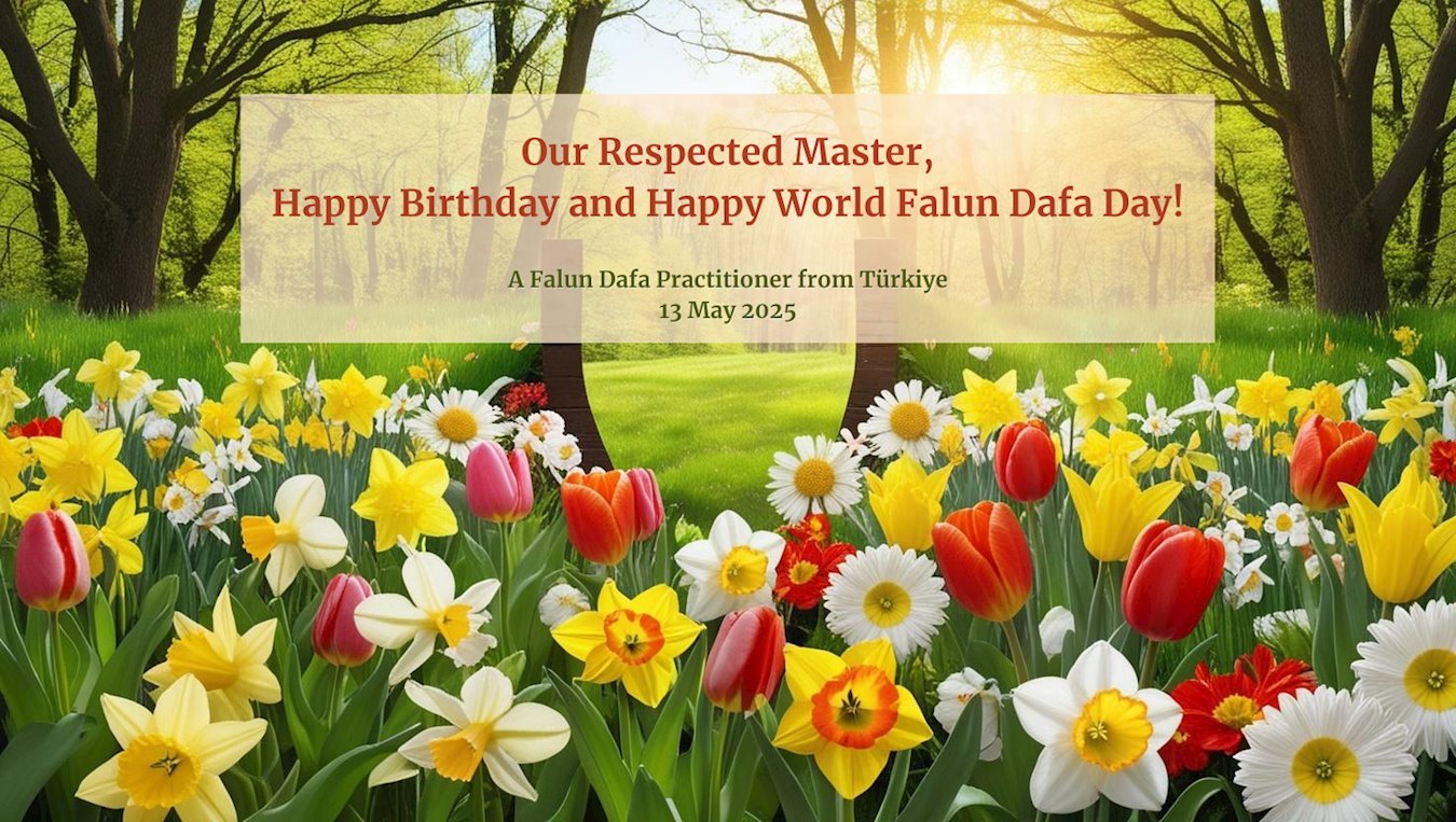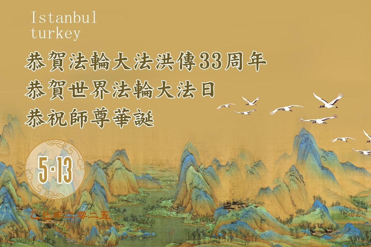 Falun Dafa praktikant u Istanbulu, Turska, s poštovanjem želi Učitelju srećan rođendan! Srećan Svetski dan Falun Dafe!