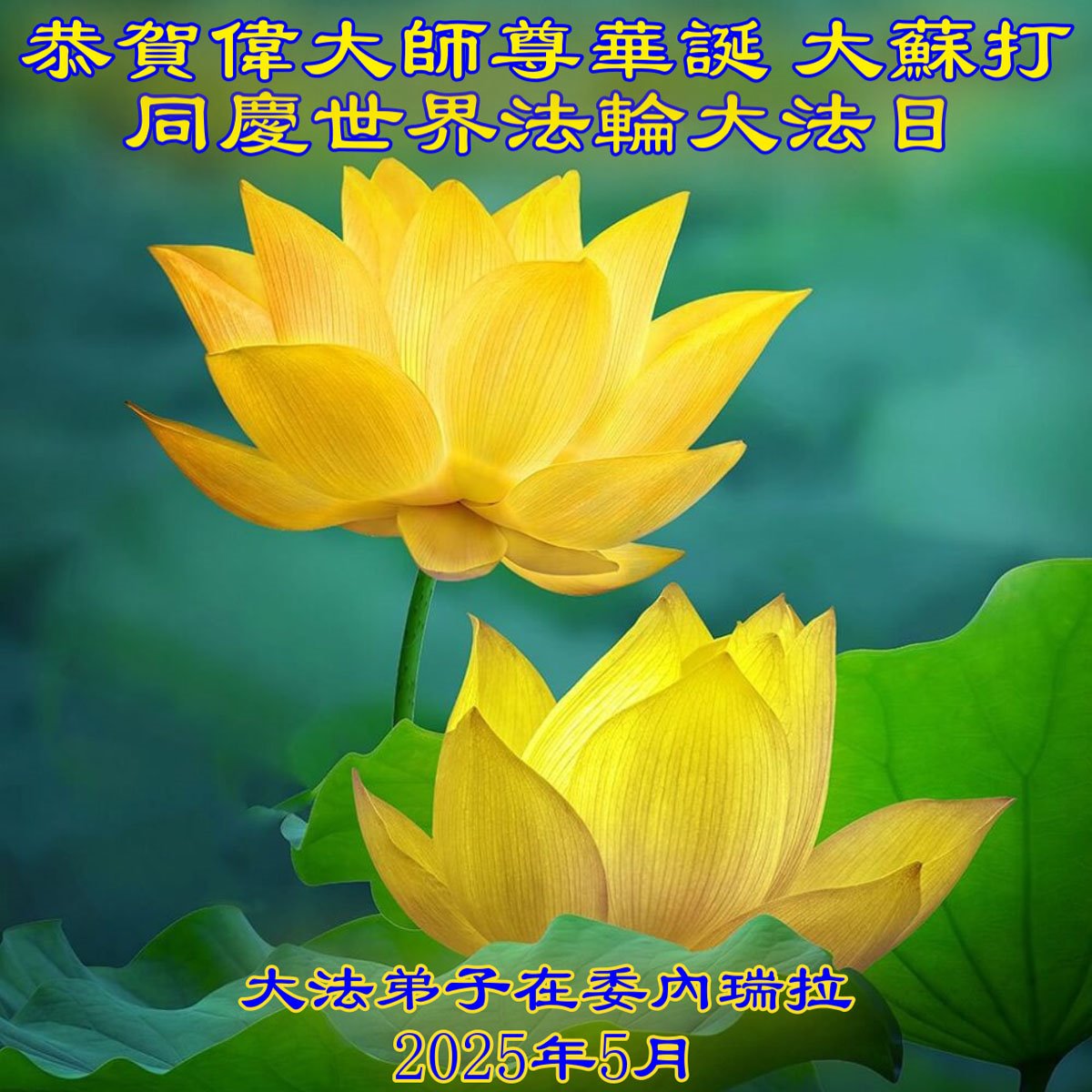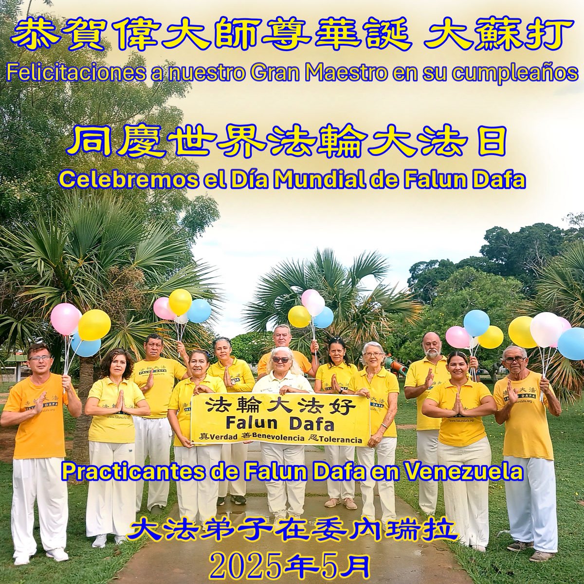 Praktikanti u Venezueli slave Svjetski dan Falun Dafa i žele Učitelju Li-u sretan rođendan!Praktikanti iz Ujedinjenih Arapskih Emirata poslali su svoju čestitku.Čestitka od praktikanata iz Perua.Švedski praktikanti slave Svjetski dan Falun Dafa.Čestitka od praktikanata iz Norveške.Čestitke su stigle od praktikanata iz Ekvadora.