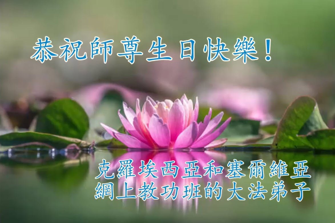Japanski praktikanti žele Učitelju Li-u sretan rođendan!Čestitka od irskih praktikanata.Australski praktikanti su poslali svoju čestitku.Praktikanti na Filipinima zahvalni su Učitelju na suosjećanju.Čestitka od indonezijskih praktikanata.Praktikanti u Tajvanu slave Svjetski dan Falun Dafa.Čestitka je stigla od praktikanata iz Srbije i Crne Gore.Latvijski praktikanti su poslali svoju čestitku.Praktikanti u Bosni i Hercegovini slave Svjetski dan Falun Dafa i žele Učitelju Li-u sretan rođendan!