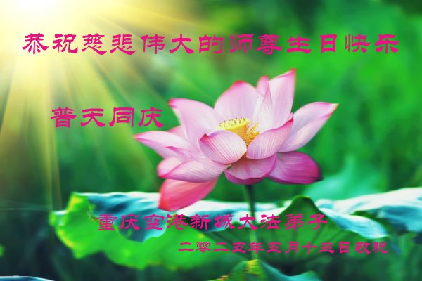 Falun Dafa praktikanti iz Čongkinga žele poštovanom Učitelju srećan rođendan i proslavljaju Svetski dan Falun Dafe!